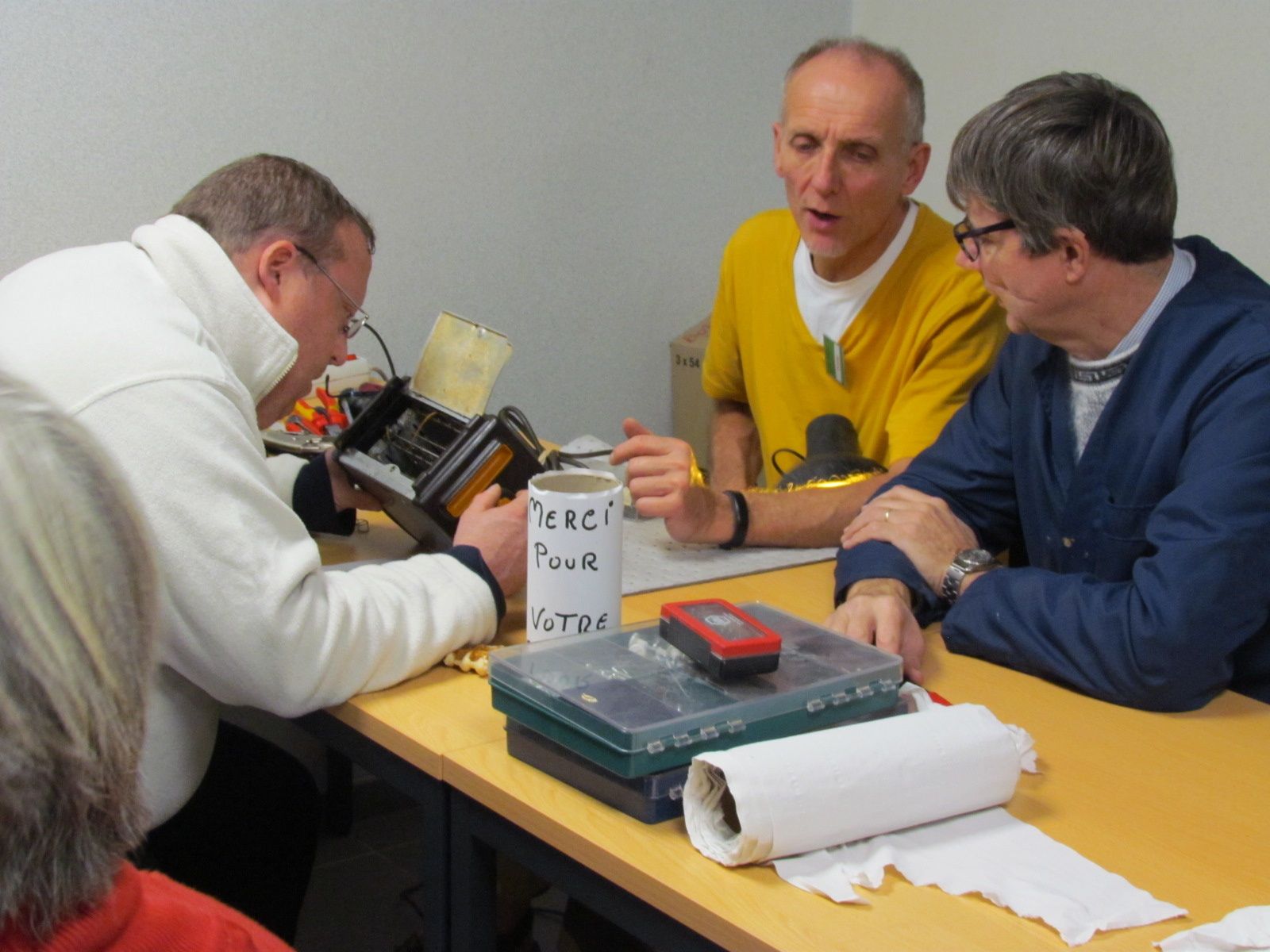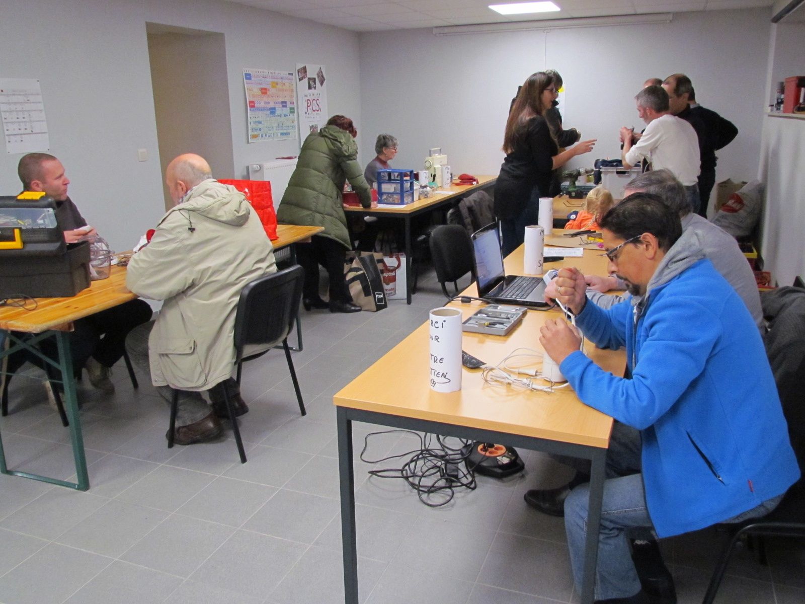 Repair-café connaît un beau succès. Ce dimanche, les portes étaient à peine ouvertes que les gens se pressaient pour faire réparer leur mix-soupe, leur fer à repasser, leur percolateur, leur radio, leur ordinateur ou faire recoudre une robe.