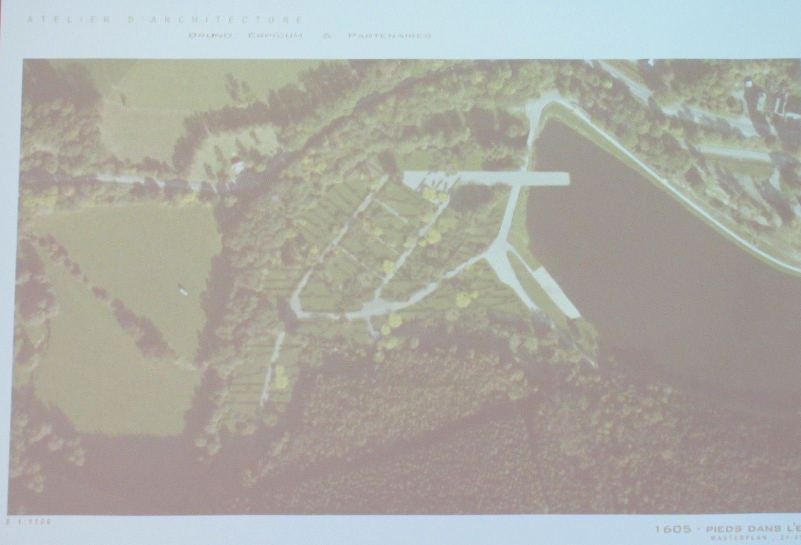 Ce projet porte le nom "Les pieds dans l'eau".et couvrira 2 ha. Le construit sera bien intégré dans la nature. Il y aura 2X50 places de parking.