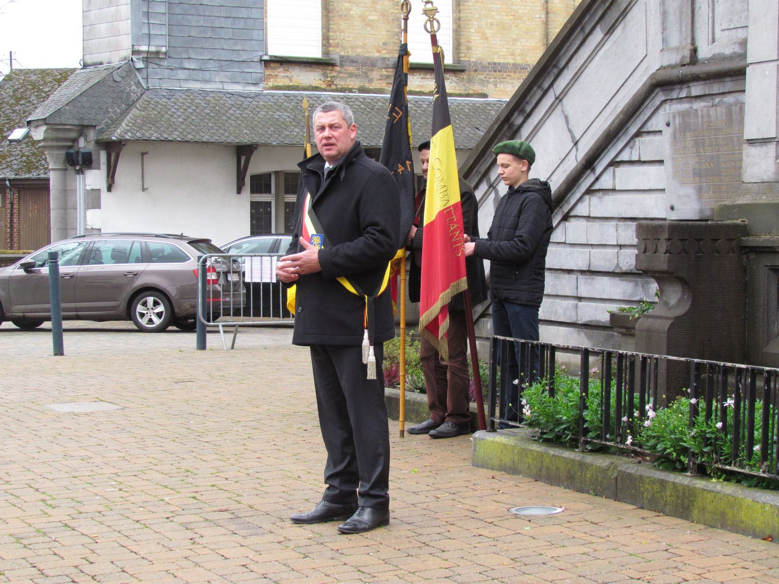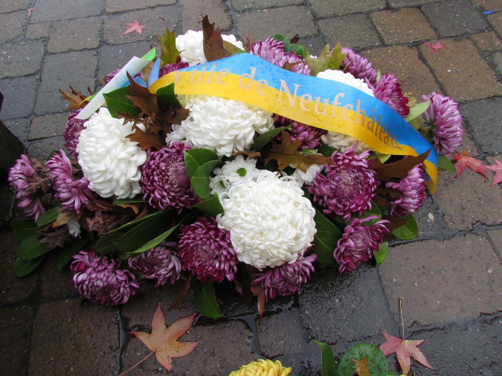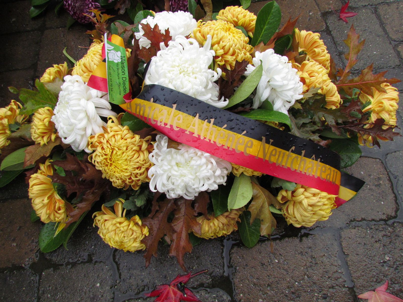 Les gerbes déposées au Monument Place Ch. Bergh et à l'Athénée